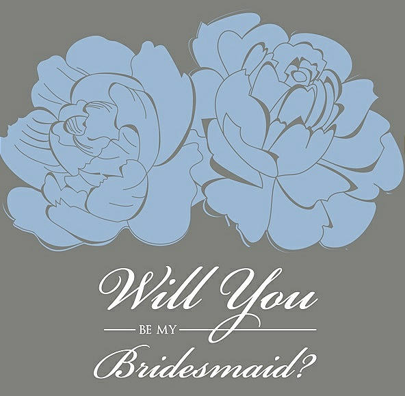 Will You Be My Bridesmaid Card - Flowers in Ice Blue & Charcoal Gray