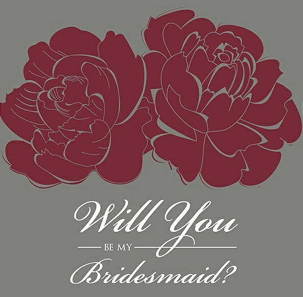 Will You Be My Bridesmaid Card - Flowers in Burgundy & Charcoal Gray