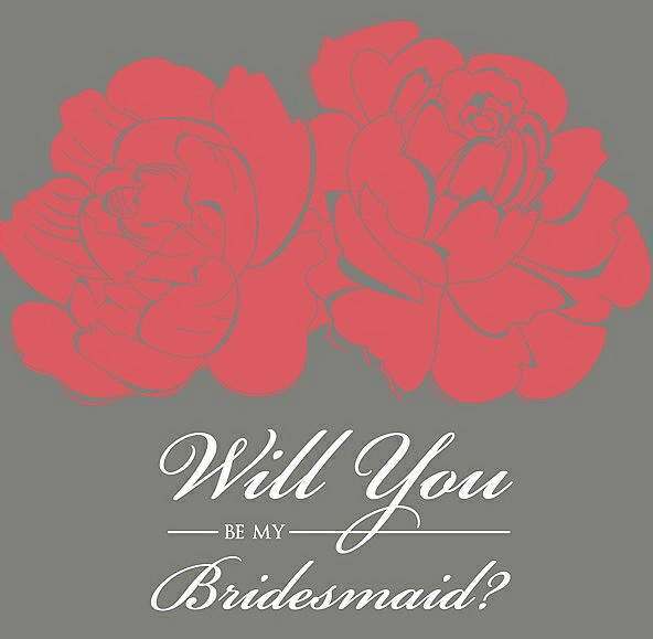 Will You Be My Bridesmaid Card - Flowers in Perfect Coral & Charcoal Gray