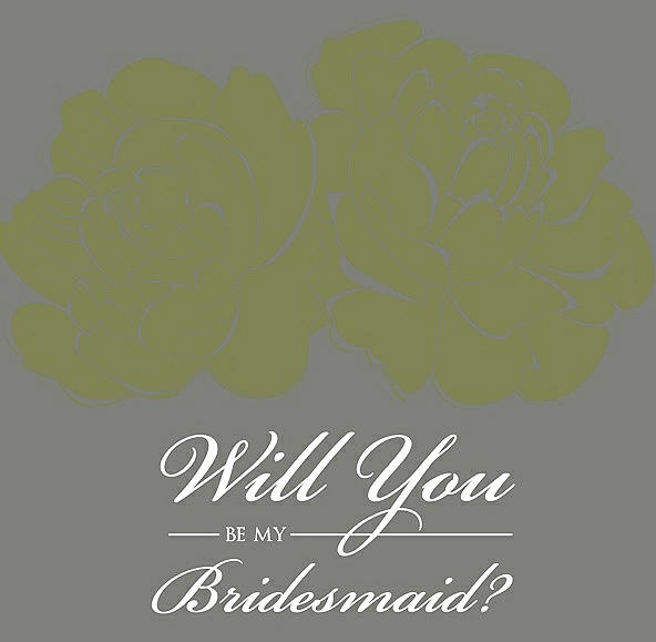 Will You Be My Bridesmaid Card - Flowers in Olive & Charcoal Gray