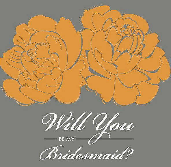 Will You Be My Bridesmaid Card - Flowers in Orange Crush & Charcoal Gray