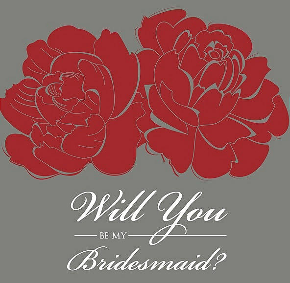 Will You Be My Bridesmaid Card - Flowers in Ribbon Red & Charcoal Gray