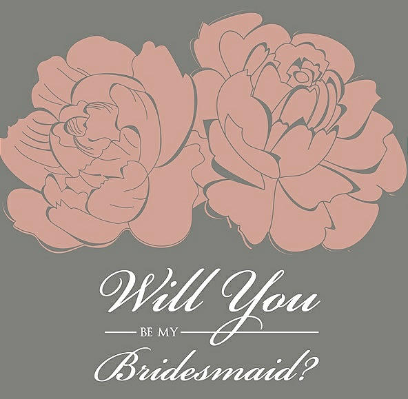 Will You Be My Bridesmaid Card - Flowers in Fresco & Charcoal Gray
