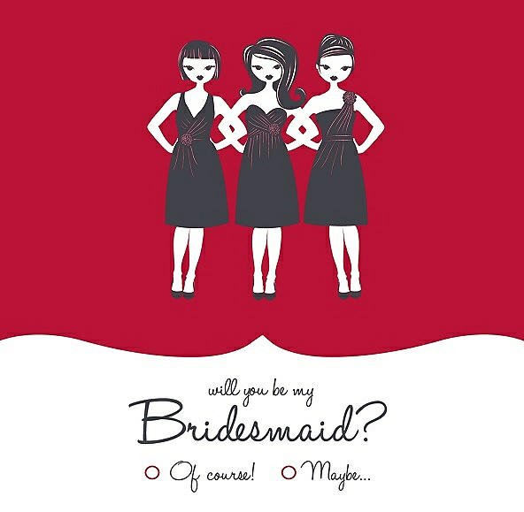 Will You Be My Bridesmaid Card - Girls Checkbox in Flame & Ebony