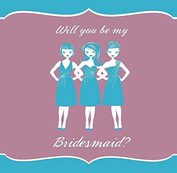 Will You Be My Bridesmaid Card - Girls in Turquoise & Rosebud