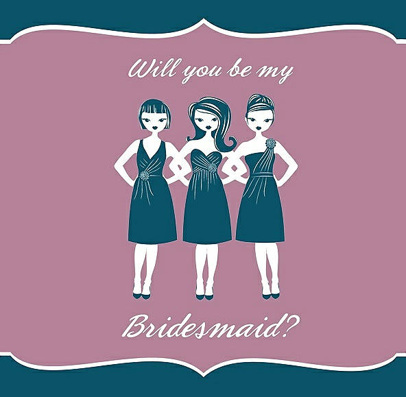 Will You Be My Bridesmaid Card - Girls in Peacock Teal & Rosebud