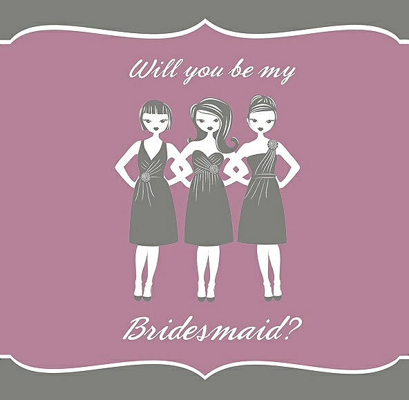 Will You Be My Bridesmaid Card - Girls in Charcoal Gray & Rosebud