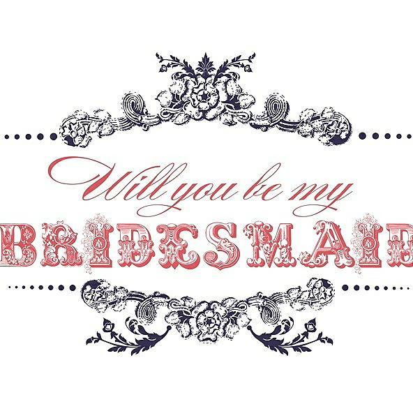 Will You Be My Bridesmaid Card - Vintage in Amethyst & Perfect Coral