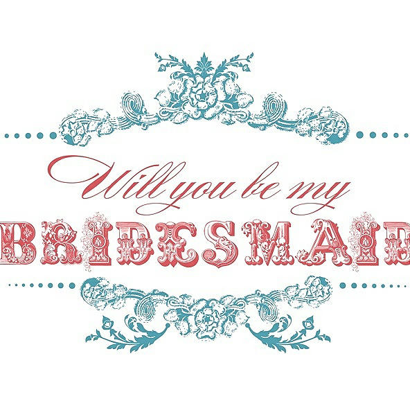Will You Be My Bridesmaid Card - Vintage in Aquamarine & Perfect Coral