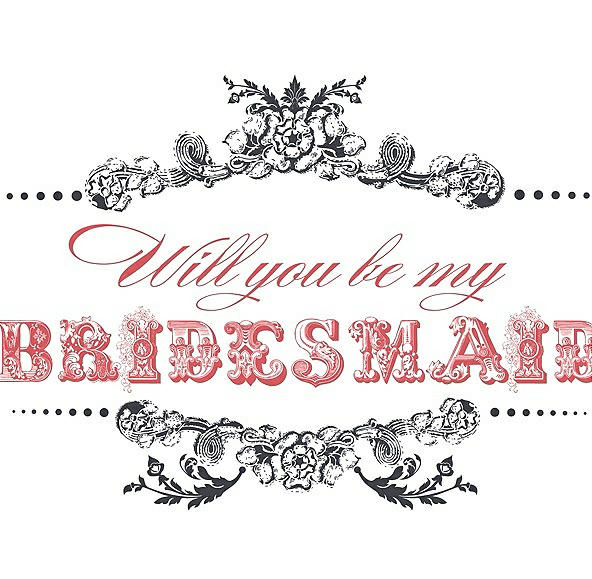 Will You Be My Bridesmaid Card - Vintage in Ebony & Perfect Coral
