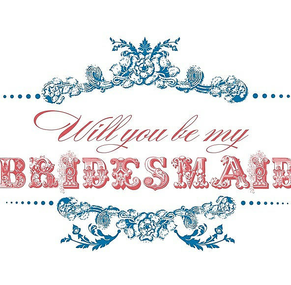 Will You Be My Bridesmaid Card - Vintage in Cerulean & Perfect Coral