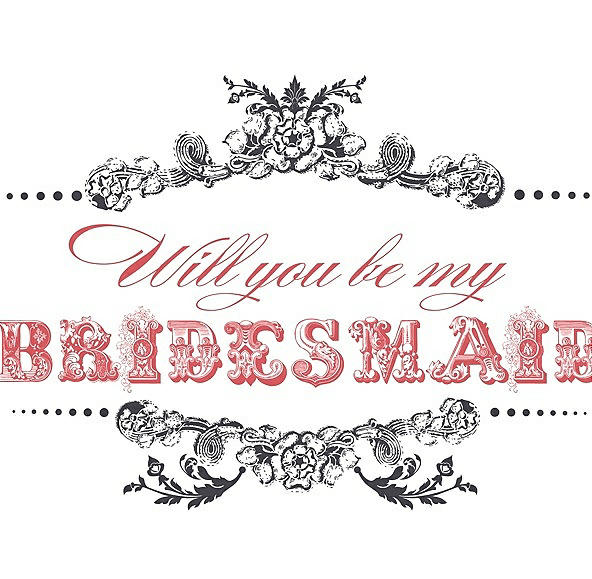 Will You Be My Bridesmaid Card - Vintage in Stormy & Perfect Coral