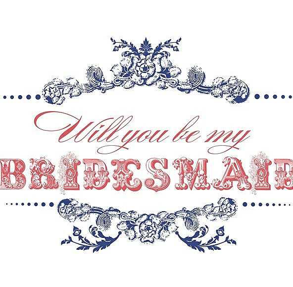 Will You Be My Bridesmaid Card - Vintage in Sailor & Perfect Coral