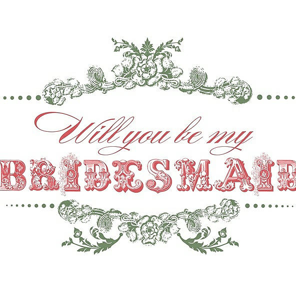 Will You Be My Bridesmaid Card - Vintage in Clover & Perfect Coral