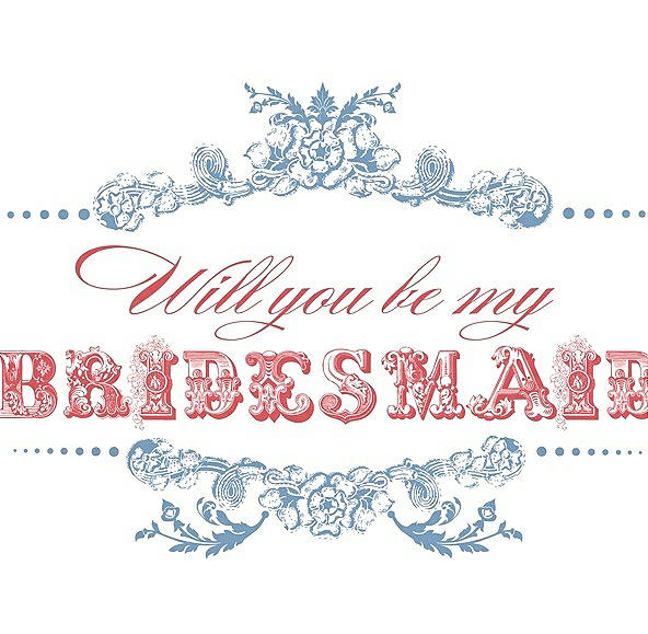 Will You Be My Bridesmaid Card - Vintage in Windsor Blue & Perfect Coral