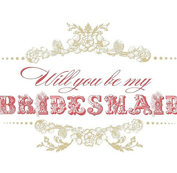 Will You Be My Bridesmaid Card - Vintage in Venetian Gold & Perfect Coral