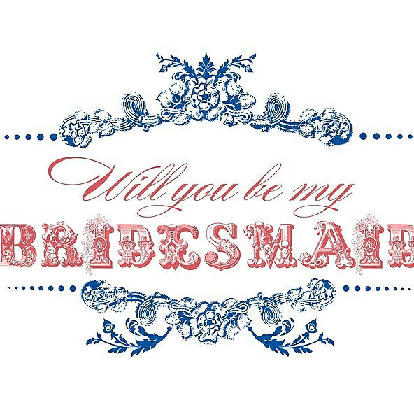 Will You Be My Bridesmaid Card - Vintage in Royal Blue & Perfect Coral