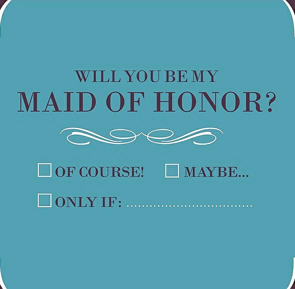 Will You Be My Maid of Honor Card - Checkbox in Aquamarine & Italian Plum