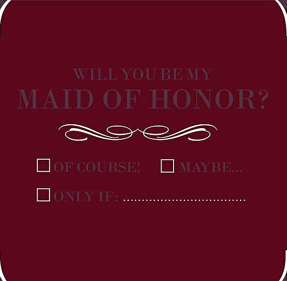 Will You Be My Maid of Honor Card - Checkbox in Garnet & Italian Plum