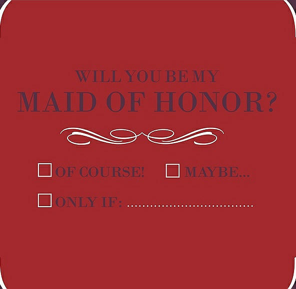 Will You Be My Maid of Honor Card - Checkbox in Ribbon Red & Italian Plum