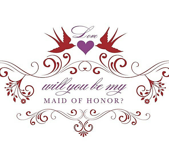 Will You Be My Maid of Honor Card - Classic in Ribbon Red & Orchid