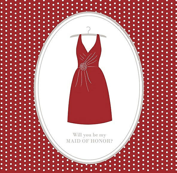 Will You Be My Maid of Honor Card - Dress in Ribbon Red & Oyster