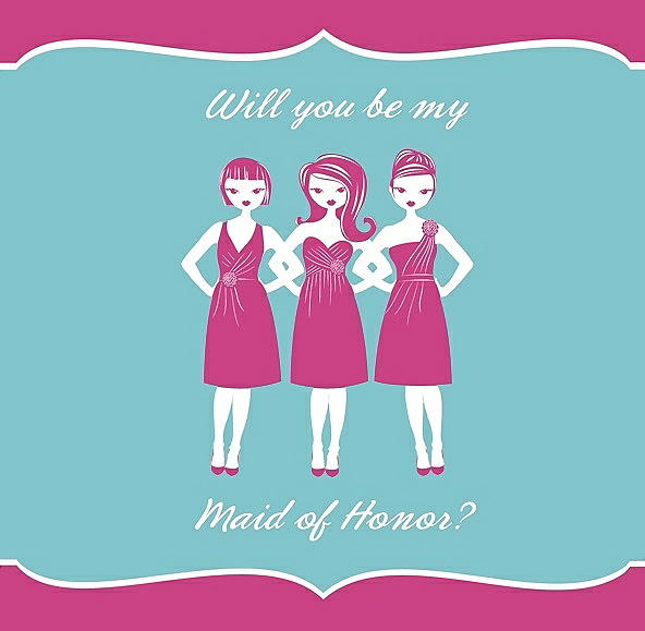 Will You Be My Maid of Honor Card - Girls in Fuchsia & Spa
