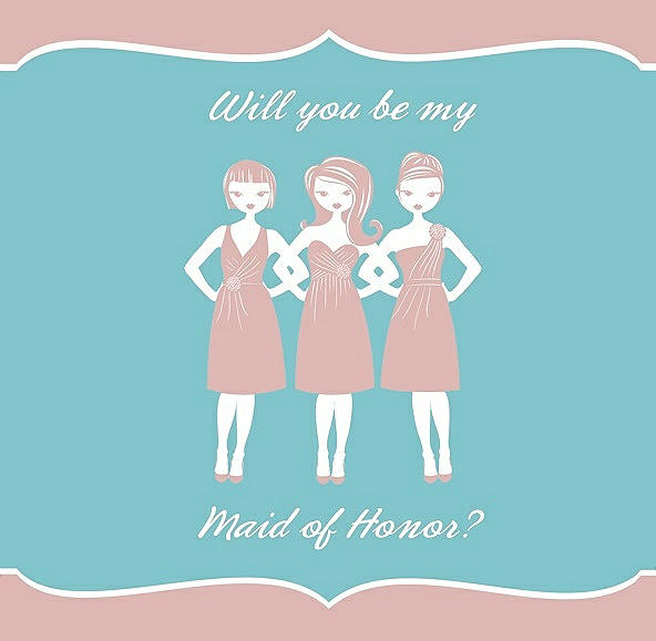 Will You Be My Maid of Honor Card - Girls in Petal Pink & Spa