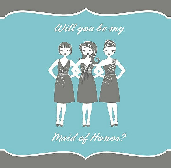 Will You Be My Maid of Honor Card - Girls in Charcoal Gray & Spa