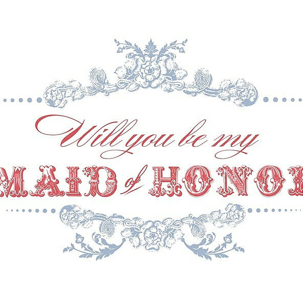 Will You Be My Maid of Honor Card - Vintage in Cloudy & Perfect Coral
