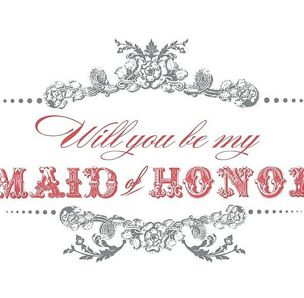 Will You Be My Maid of Honor Card - Vintage in Pewter & Perfect Coral