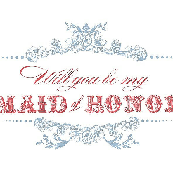 Will You Be My Maid of Honor Card - Vintage in Pale Blue & Perfect Coral