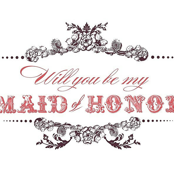Will You Be My Maid of Honor Card - Vintage in Bordeaux & Perfect Coral