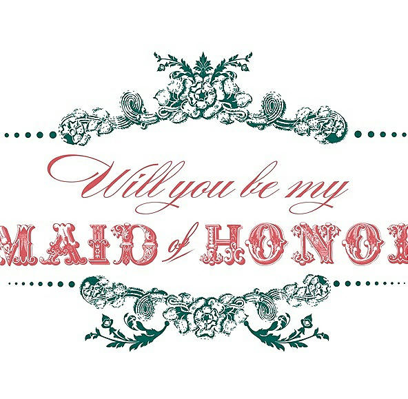 Will You Be My Maid of Honor Card - Vintage in Emerald & Perfect Coral