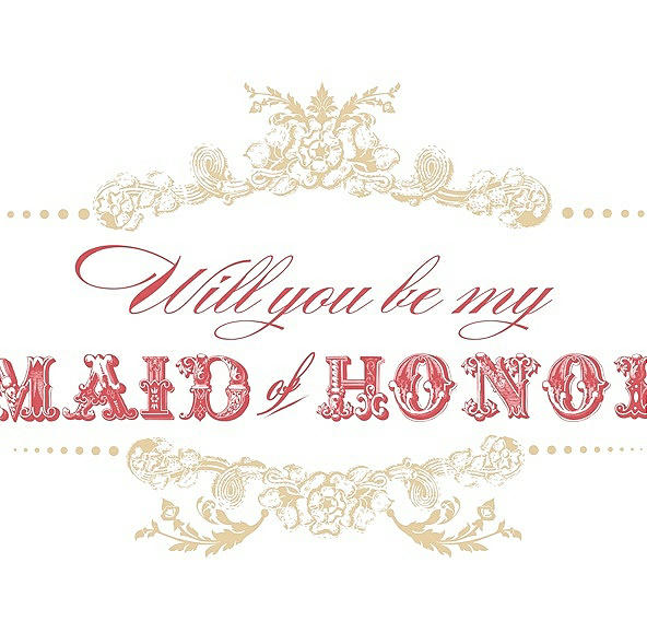 Will You Be My Maid of Honor Card - Vintage in Ice Yellow & Perfect Coral