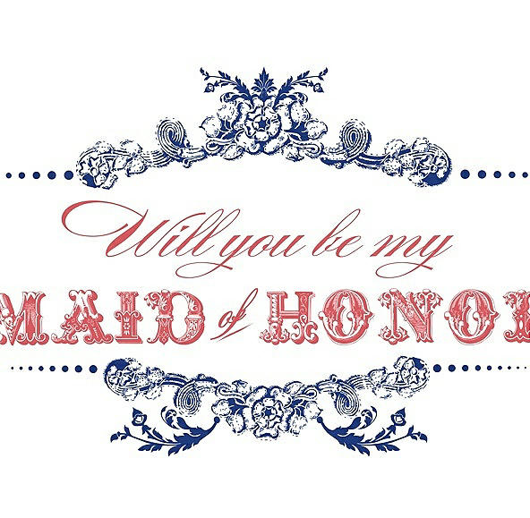 Will You Be My Maid of Honor Card - Vintage in Sapphire & Perfect Coral
