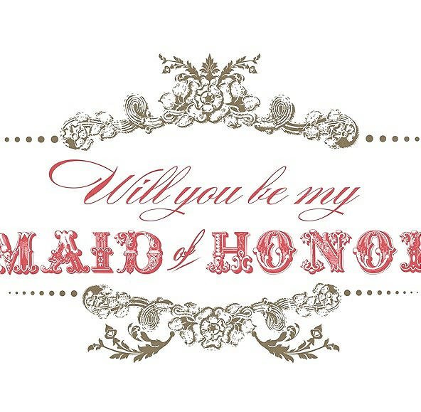 Will You Be My Maid of Honor Card - Vintage in Antique Gold & Perfect Coral