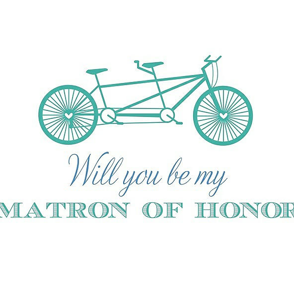 Will You Be My Matron of Honor Card - Bike in Pantone Turquoise & Cornflower
