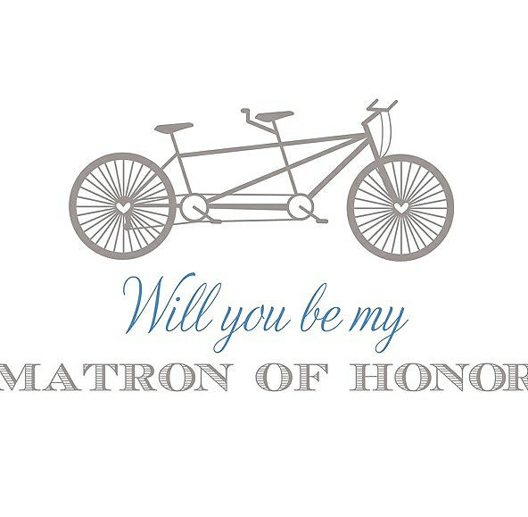 Front View - Taupe & Cornflower Will You Be My Matron of Honor Card - Bike