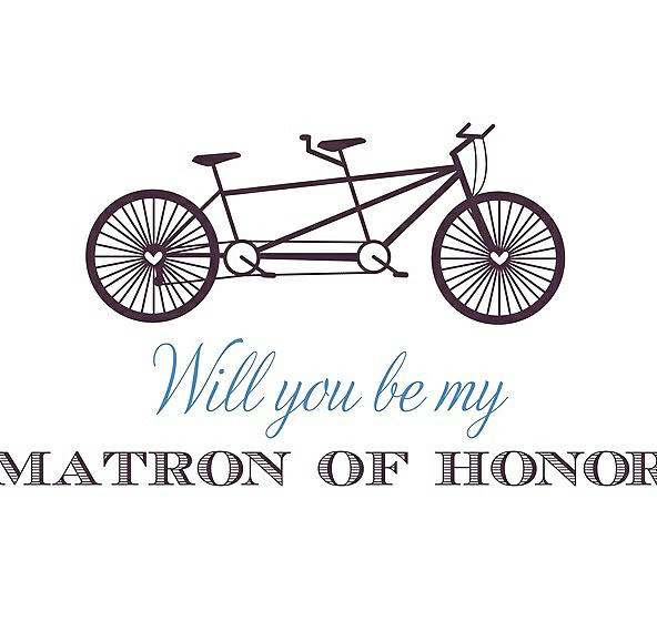 Front View - Eggplant & Cornflower Will You Be My Matron of Honor Card - Bike
