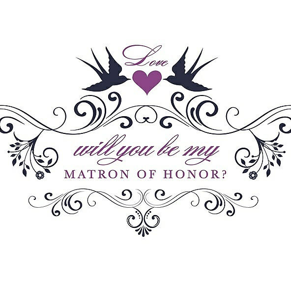 Will You Be My Matron of Honor Card - Classic in Navy Blue & Orchid