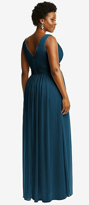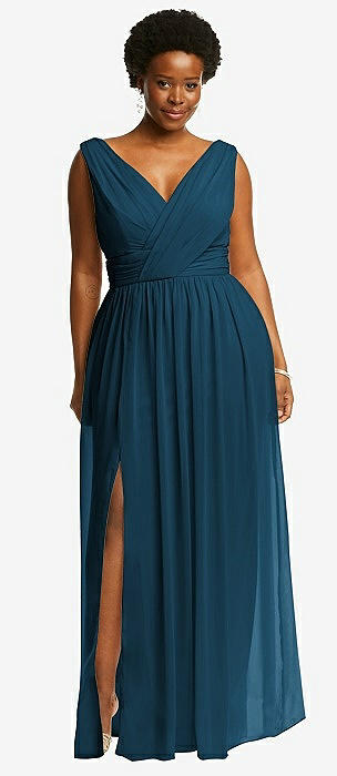 Sleeveless Draped Chiffon Maxi Dress with Front Slit