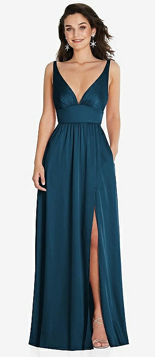 Deep V-Neck Shirred Skirt Maxi Dress with Convertible Straps