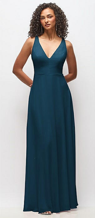 Atlantic Blue V-Neck Bridesmaid Dresses