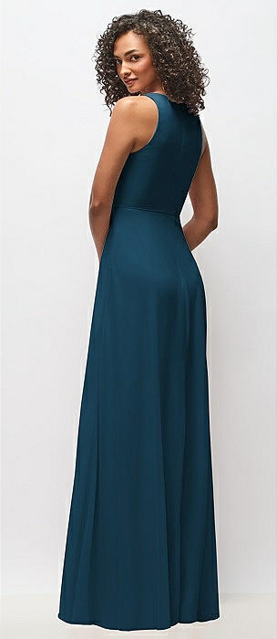 Sleeveless Draped Chiffon Maxi Dress with Front Slit in atlantic blue