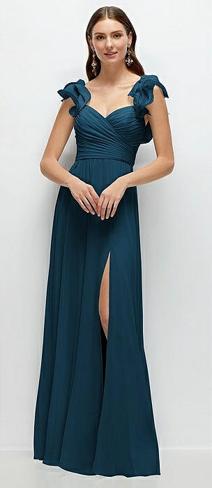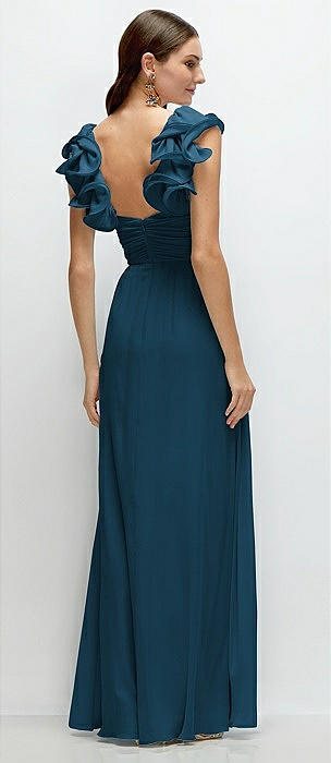 Dramatic Ruffle Edge Strap Chiffon Maxi Dress in atlantic blue