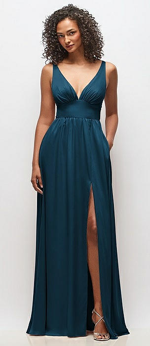 Deep V-Neck Stretch Satin Mermaid Dress with Slight Train in atlantic blue