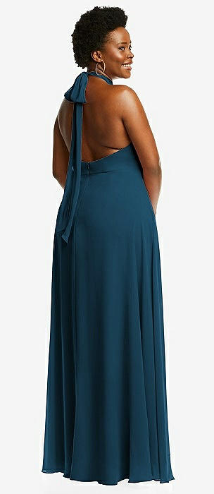 High Neck Halter Backless Maxi Dress in atlantic blue