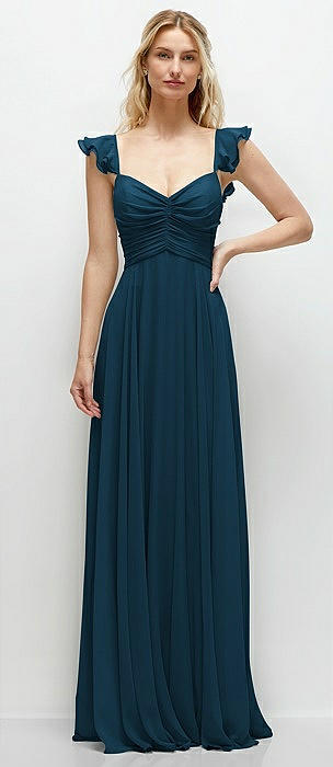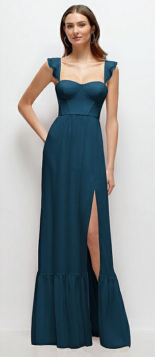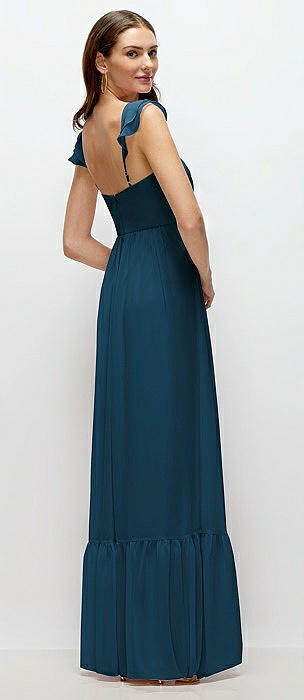 Ruffle Strap Chiffon Bustier Maxi Dress with Ruffle Hem A-Line Skirt in atlantic blue