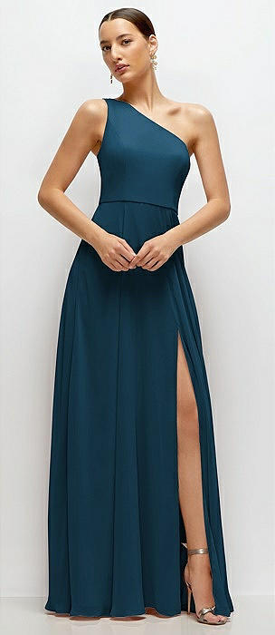Chiffon One-Shoulder Maxi Dress with Circle Skirt in atlantic blue